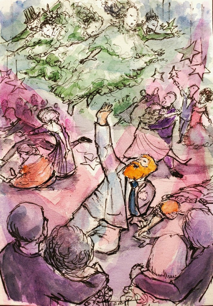 After the chaos, the screams, and a hundred prom kids running through purple and pink lights, and after a little persuasion, I convinced the ghosts of the 1913 flood to come down to the floor to talk to me, to us. They descended from the ceiling of my niece’s high school gym through the cardboard stars hanging on fishing line, carrying their own river haze with them, until they all dangled just above the floor. One of the spectral women looked around the gym. “The water was up to the ceiling of the house. We were all asleep. It was so fast. The water.” One of the kids said that the flood had killed over 900 people in several states. “We were dancing around the barn just the night before.” She looked at the faces of the kids in bright prom dresses and tuxedos. “Like you.” She looked back at me, and the room just stayed quiet for minutes. Kids held each other. No one moved. The ghosts floated in ripples… like they were in water. “It was right here,” she said, moving her hand across us all, as if the gym had been a barn, a field, a house. “I’m so sorry,” I told them. They stared at us. They were waiting for me to tell them what to do now, now that their whole world had ended in a night, a night that they seemed trapped inside forever. I didn’t know what to tell them. I looked at all the faces of the kids, some of them drying their eyes from their own fear. They’d expected to have the best night of their lives. Now they were talking to ghosts—ghosts who had been their age when they died. I didn’t think I would have the right words to comfort her—after so much time, but I tried. I looked at her, “Well, you’re here with us tonight. Do you want to— do you want to dance with us? We could all dance with you.” Some of the kids nodded. She stared at me in a hundred years of pain and loss, her face blank. “Yes,” she said, and she drifted down those last few inches, settling like a rock at the bottom of a lake, and her toes touched the dance floor for the first time.