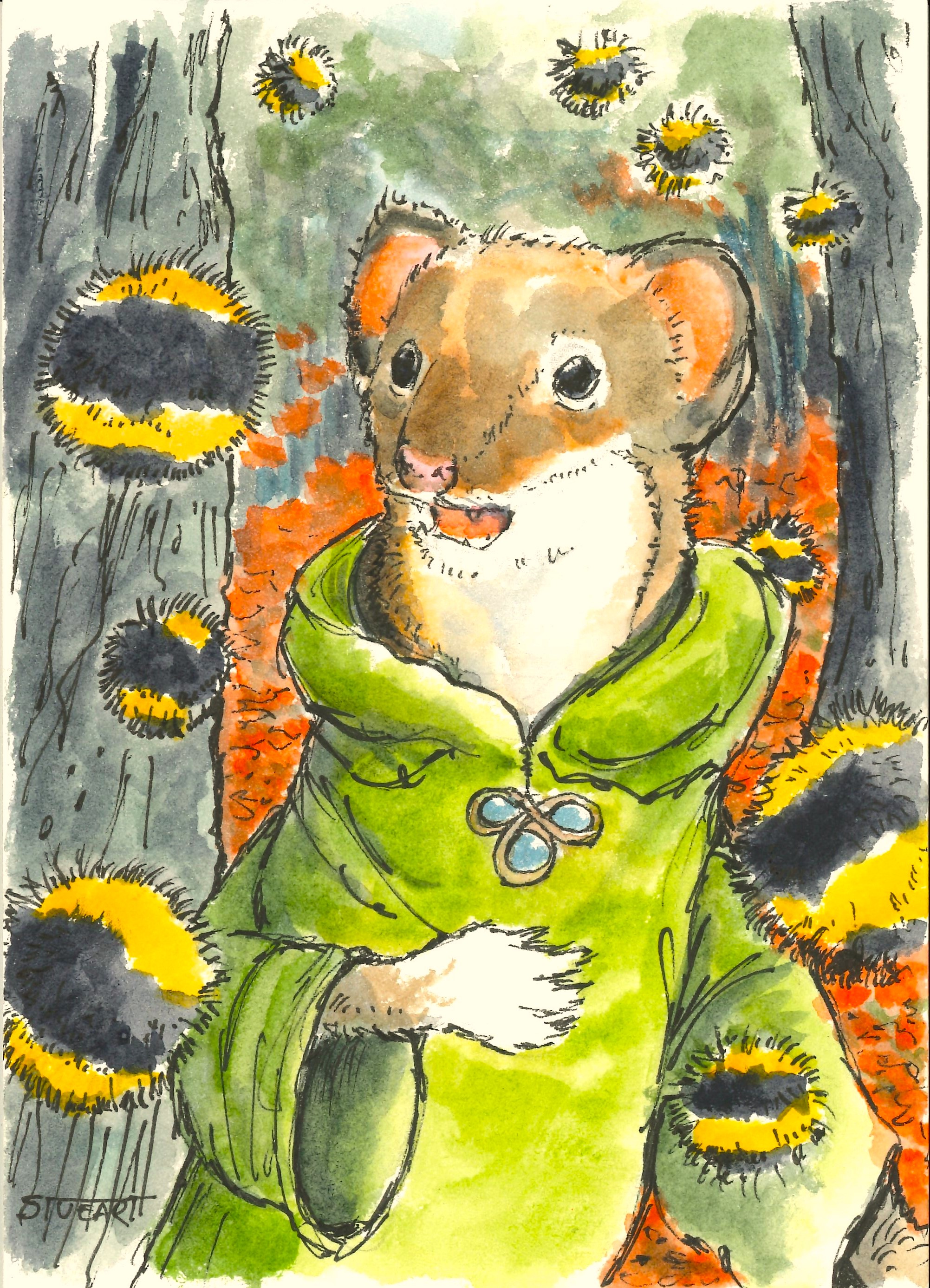 “Protect the Autumn Woods!” is an illustrated story by Jerome Stueart in 33 short flash fiction chapters. The story features D&D-inspired magic-using forest animals who fight to protect their homes. This story was at first a response to a prompt list created by Jenn Reese and Deva Fagan for an October Art Challenge in 2021. You can now read all 33 parts of the story, “Protect the Autumn Woods” with the search term, #AutumnWoods. “Protect the Autumn Woods!” Art Show at the Dayton Society of Artists (48 High Street, Dayton, OH) from November 1 — December 15 2024.