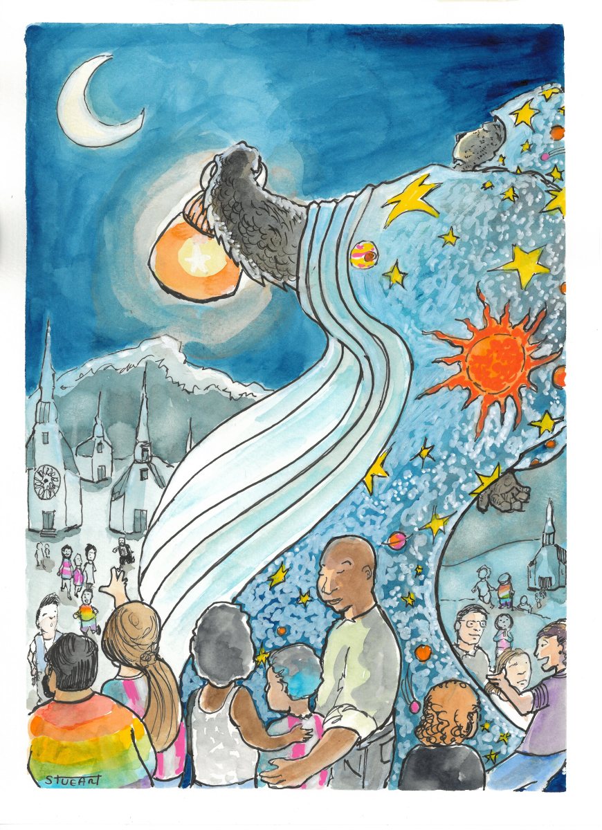 “Bear the Light,” (11 x 15) Jerome Stueart, watercolor, mixed media on paper. Second in the series, Meditations on the Bears in the Baptist Hymnal. Prints available at Redbubble in Bearnabas shop.