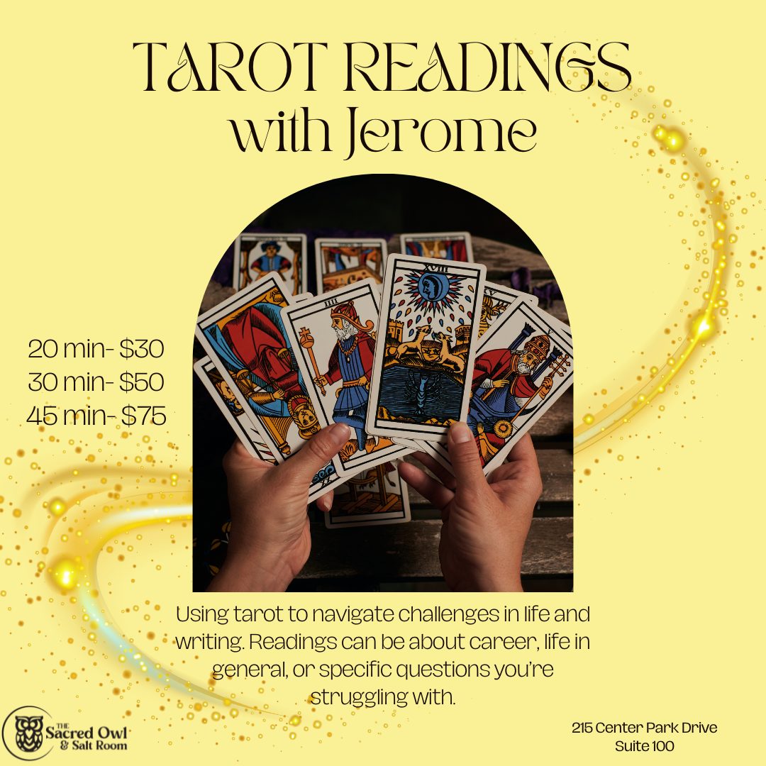 Now I work at the Sacred Owl and Salt Room as a tarot card reader, available for individual readings and your parties. I discuss all things tarot and some other spiritual things on this site, and you can book me there too.