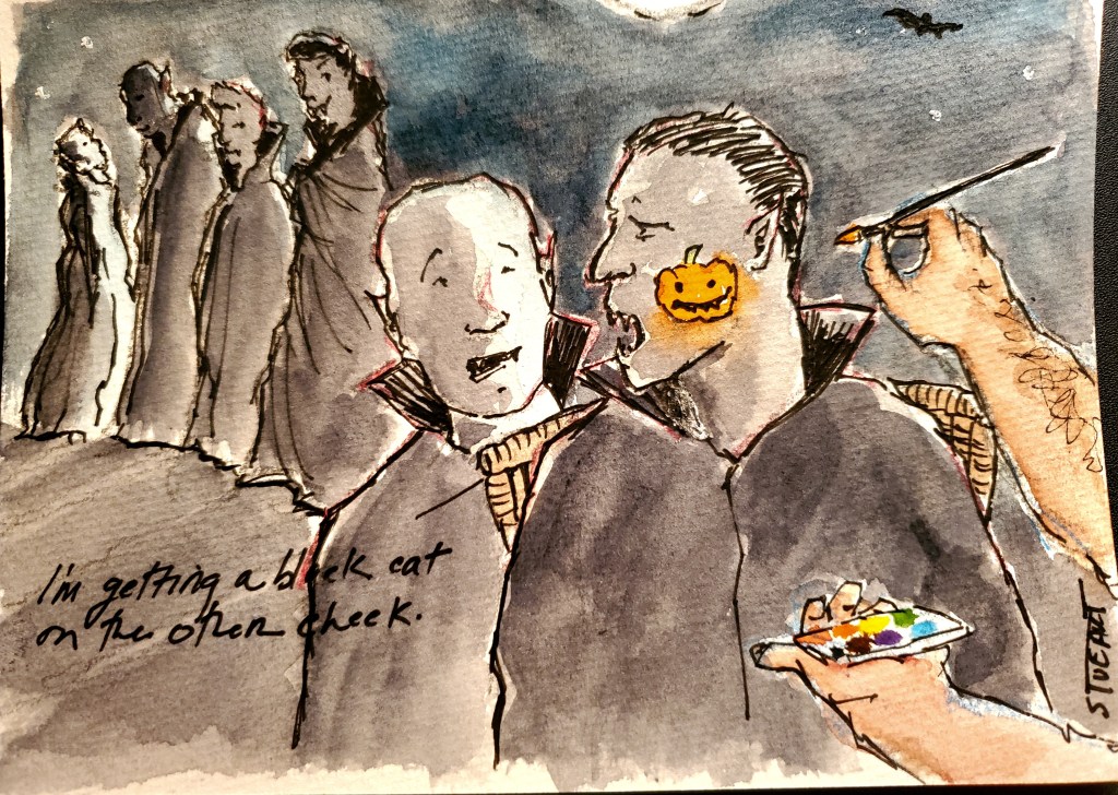 Well what was I going to do? Disappoint a whole nest of Vampires? So I got out my facepaints (I keep a set in the glove compartment of the truck) and set up a little booth. I mean, they’d all been through Halloween for centuries and not one of them had gotten their face painted? You should have seen their excited pale faces lean up to my brush and hear them say, “Oh, I want a Luna moth.”