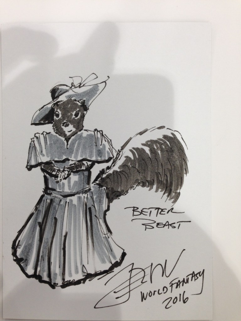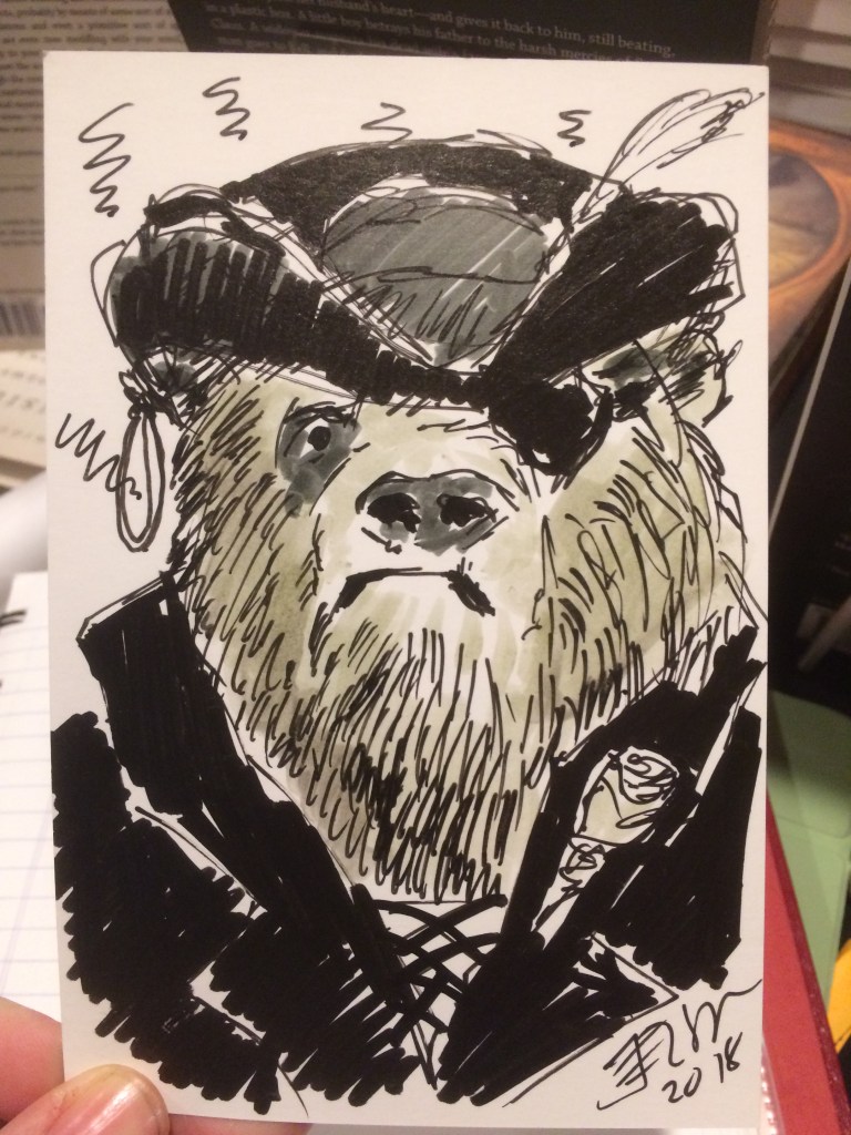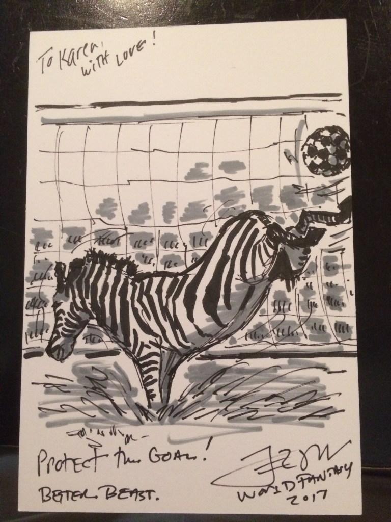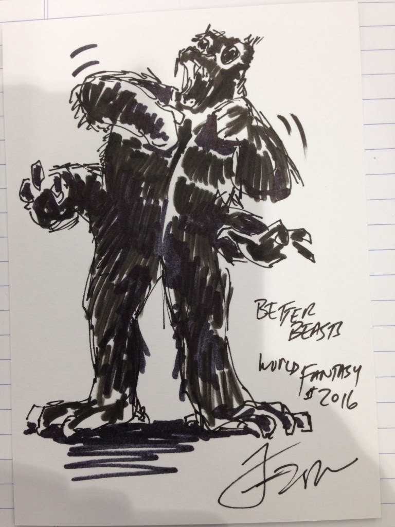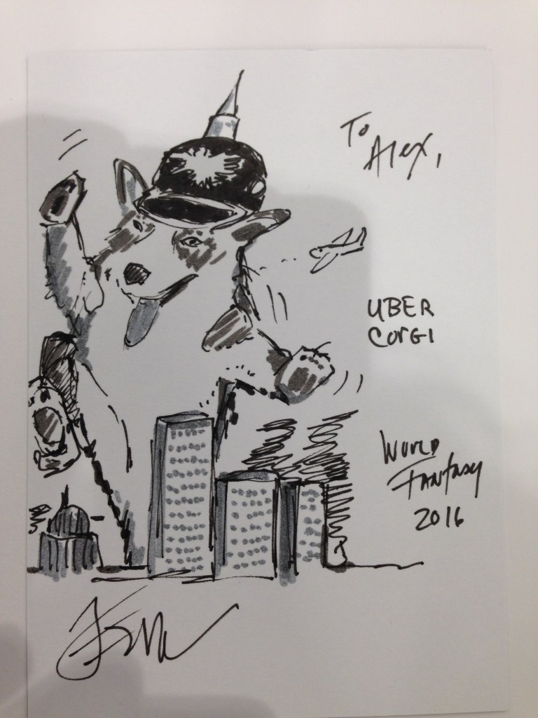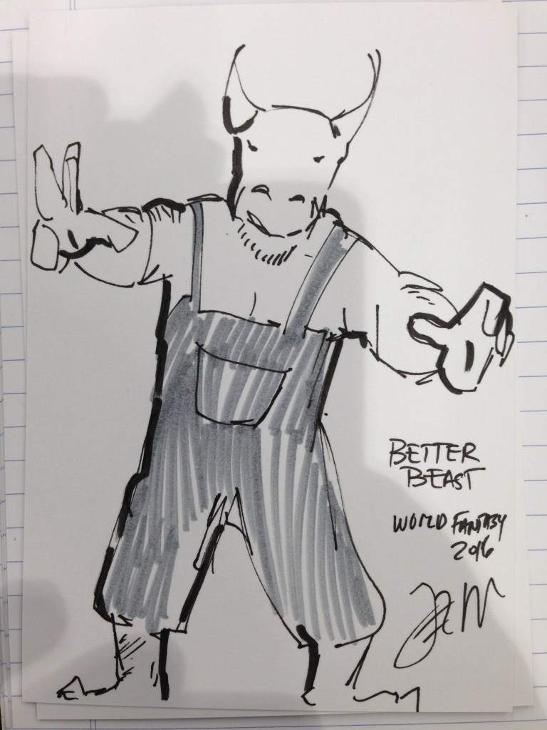 When I sell someone my book at conferences, I often offer the buyers a drawing of their favorite animal doing something as an extra gift. It’s a cool challenge! We always end up with awesome, weird things. Here are a few of the ones other people have challenged me to do.