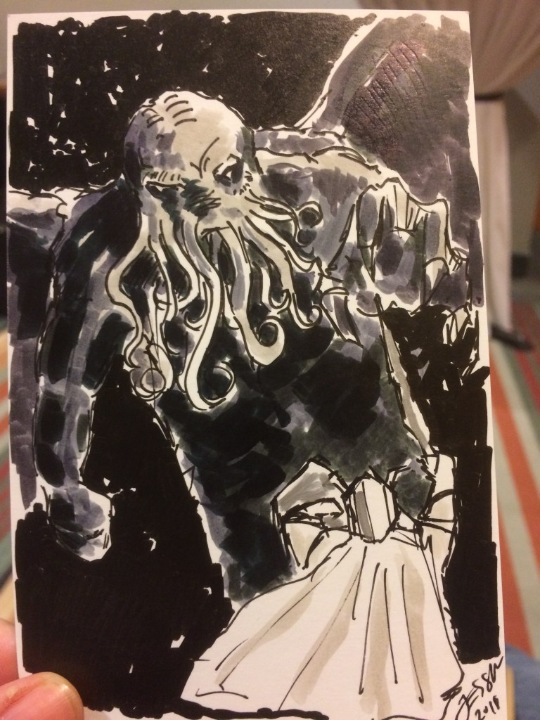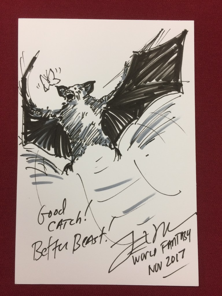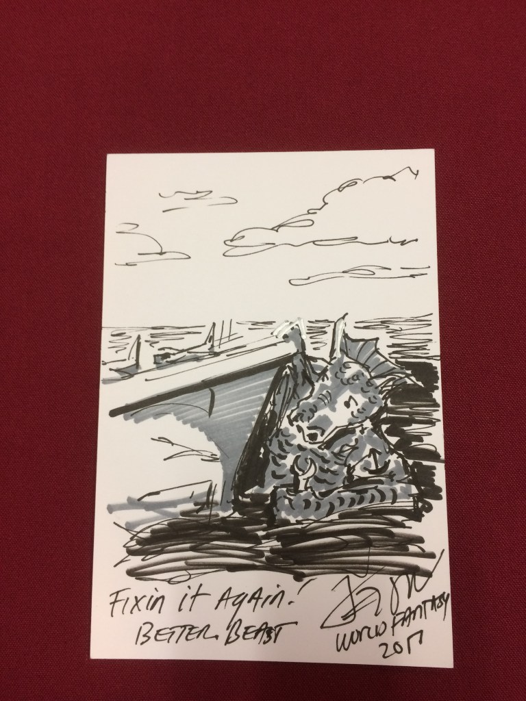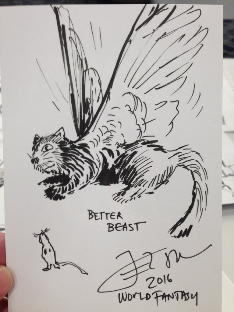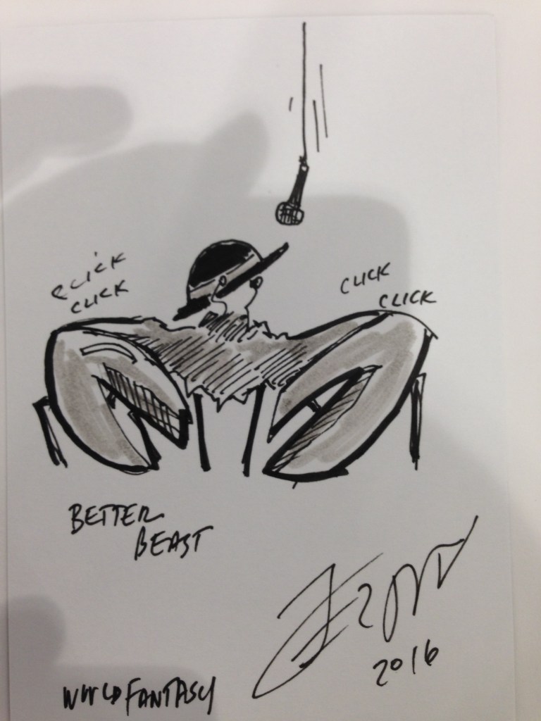 When I sell someone my book at conferences, I often offer the buyers a drawing of their favorite animal doing something as an extra gift. It’s a cool challenge! We always end up with awesome, weird things. Here are a few of the ones other people have challenged me to do.