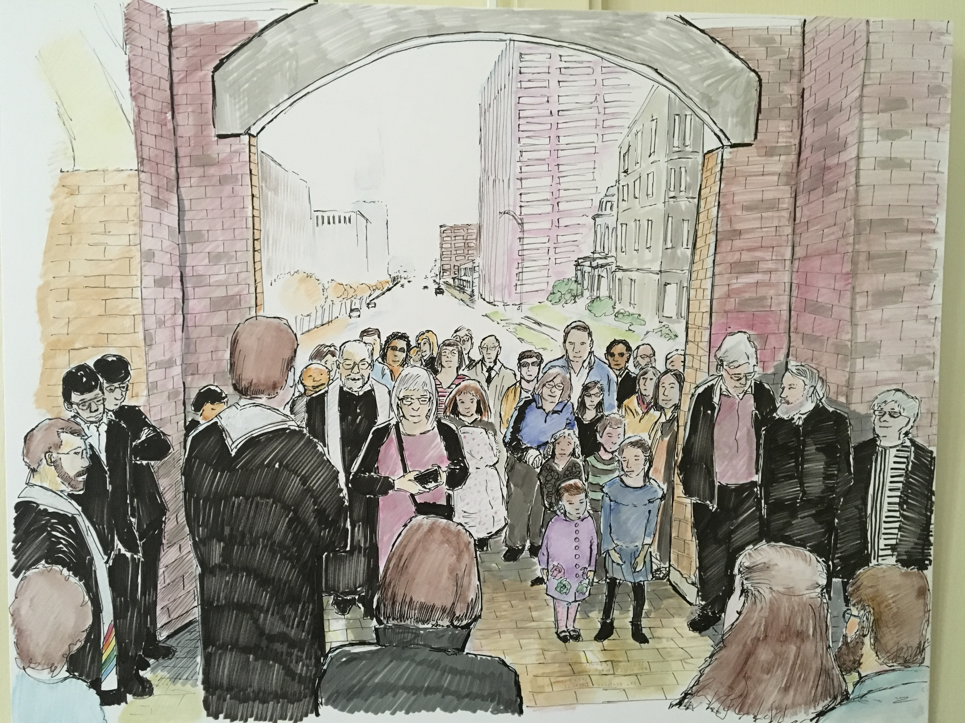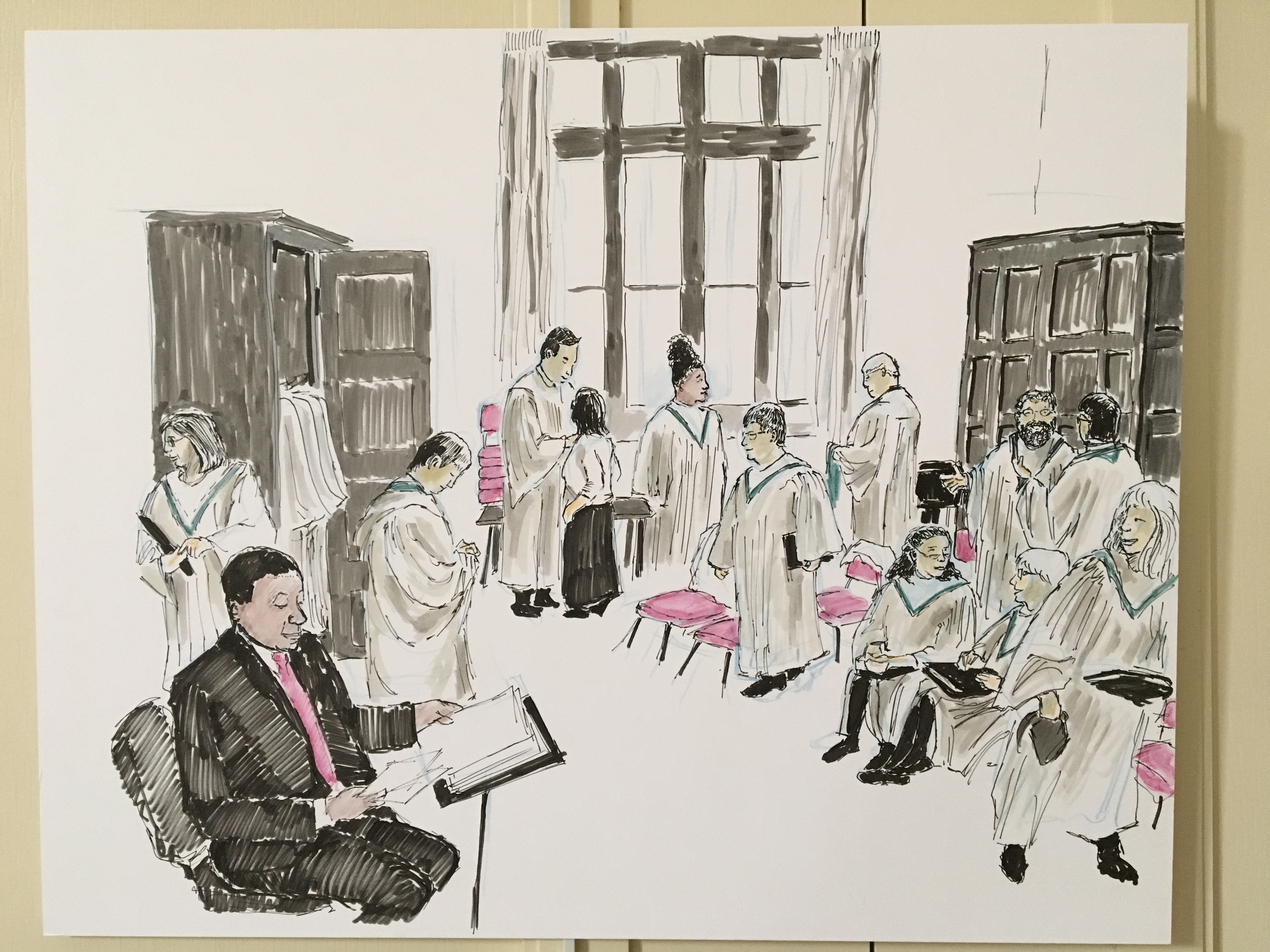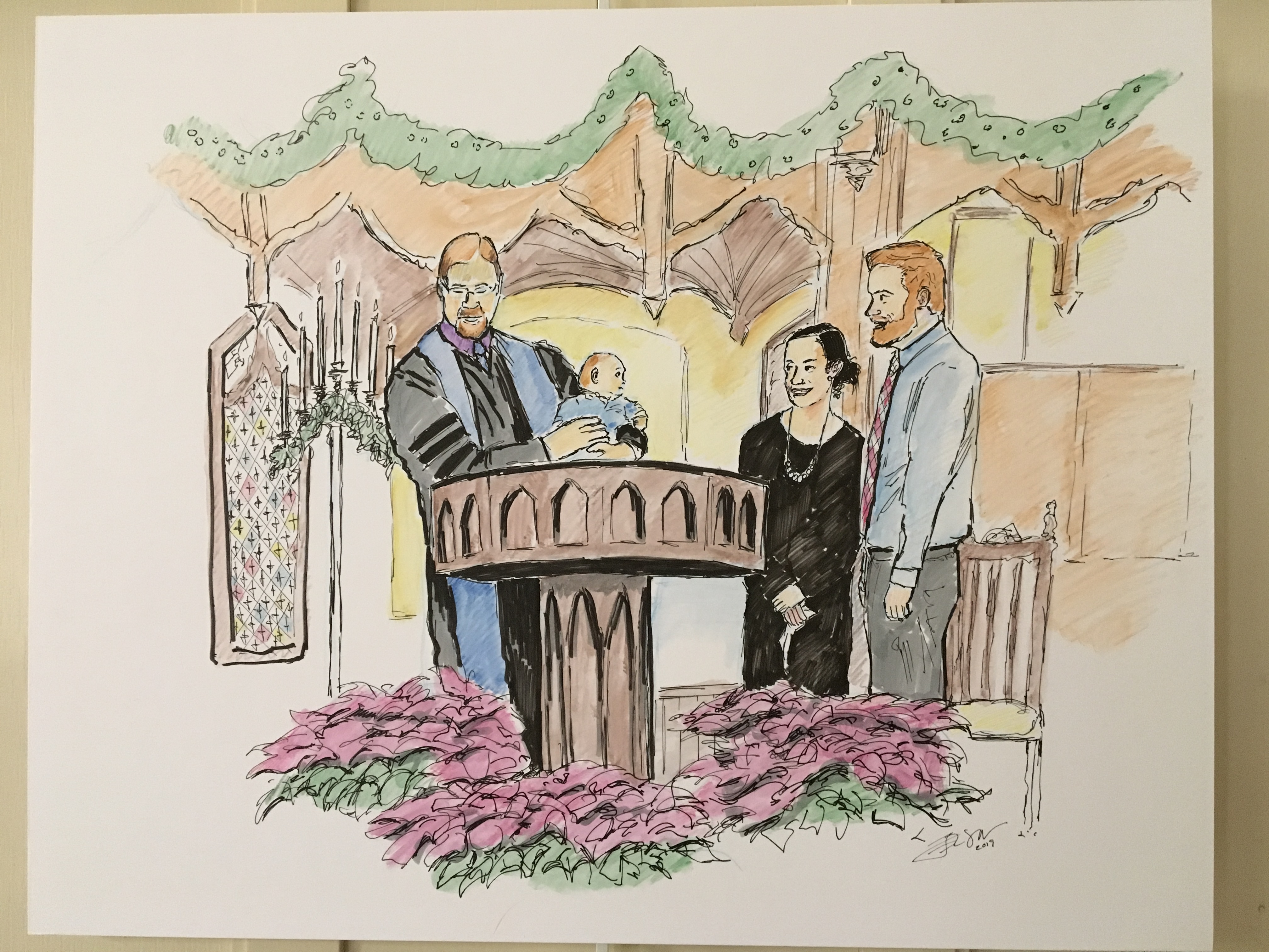 Illustrating the life of my church back in 2018, I tried to capture big group shots of us together in pen/ink/watercolor.
