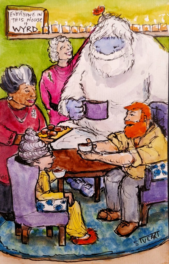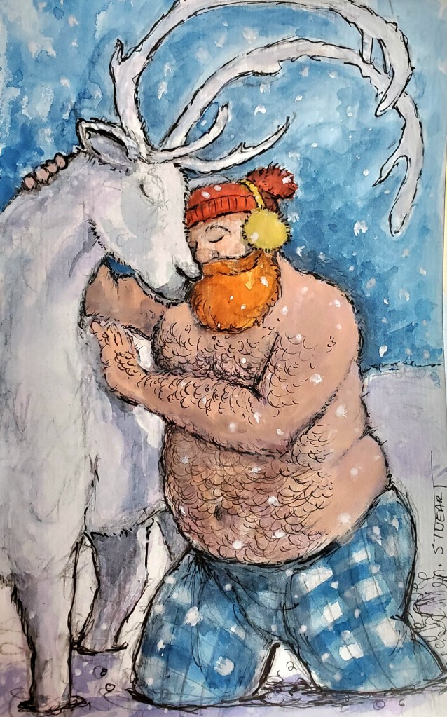 My 2022 series “The Further (Queer) Adventures of Yukon Cornelius” which is scattered across this blog—all the paintings and the stories are here if you search for “Yukon Cornelius”— you should find all 50-52 paintings (mostly watercolor, some acrylic). But they are also gathered under the Squarespace link.