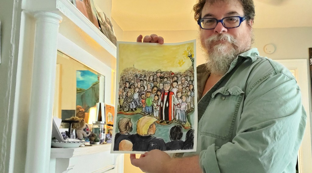 After the painting went viral, seen by hundreds of thousands, maybe millions, of people around the world, I knew this moment was bigger than me, and the outpouring of love and support I received as an artist was as much a testament to Bishop Budde, speaking truth in the face of malevolent power. Her words that day spoke to millions of people.