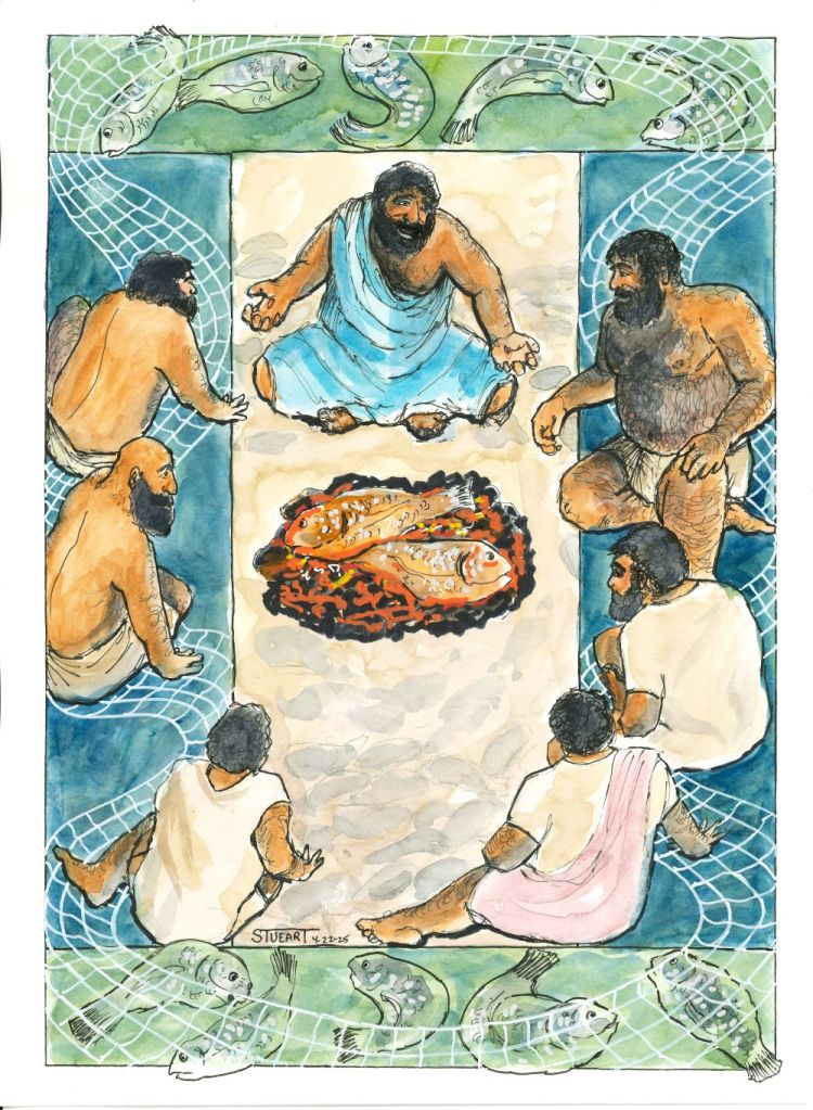 “Day by Day, He Gladly Bears and Cheers Me,” (11 x 15) Jerome Stueart, watercolor, mixed media on paper.